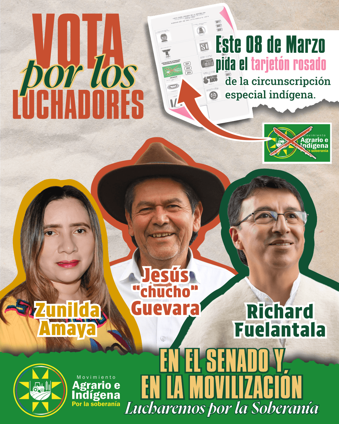 En coherencia con la línea editorial sostenida por este medio en sus publicaciones impresas y digitales, y en ejercicio del rigor y la transparencia que nos caracterizan, el Periódico SOBERANÍA invita a todo el pueblo colombiano a respaldar la lista del Movimiento Agrario e Indígena por la Soberanía al Senado de la República.