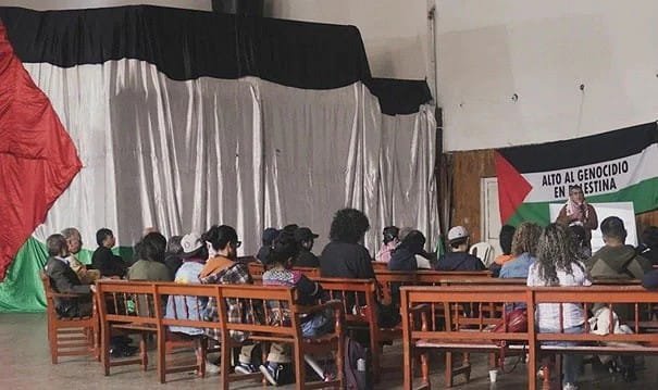 Su intervención abrió la Asamblea Nacional Popular Independiente por Palestina, donde una madeja de organizaciones sociales, políticas, sindicales, estudiantiles y populares de todo el país entretejieron la palabrea. Con el pasar de las horas, las expectativas de los presentes fueron convirtiéndose en certezas, hasta hacer de la jornada un paso firme hacia la unidad consecuente del movimiento de solidaridad con Palestina. La presencia de Manuela Bedoya y Luna Barreto, sobrevivientes del crimen de guerra israelí contra la Flotilla Sumud, volvió tangible el espíritu de resistencia. Ahí estaban, vivas, para dar testimonio del horror imperialista y de la esperanza de los pueblos del mundo.