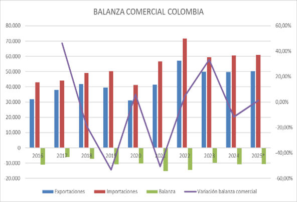 El tercer eufemismo es el más audaz. Mario Valencia celebra que se redujo el déficit con EE.UU. y que las exportaciones no mineras subieron del 45% al 57% del total. De nuevo, nos muestran las alas e ignoran el motor: las exportaciones totales cayeron de 57.000 millones de USD en 2022 a 50.199 millones en 2025, disparando el déficit global a -10.660 millones.